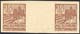 12 + 28 Pf dunkelrot im Kehrdruckpaar mit Abart senkrecht ungezähnt vom rechten Bogenrand, kopfstehende Marke mit PF "weißer ovaler Fleck oben in der Mütze über dem rechten Auge", zudem Kehrdruckpaar im Randbereich oben mit zusätzlicher Blindzähnung, postfrisch, Attest vom 21.04.17 "einwandfrei" Kramp BPP, Rarität für die große