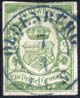 1/3 Gr moosgrün, vollrandig, hinterlegt, blauer K2