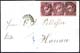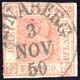 1 Ngr schwarz auf Hellrotkarmin (feuerrot) im waagerechten Dreierstreifen auf Außenteil eines Faltbriefes nach Hanau, NSt. 1 sowie AufgabeSt. K2 DRESDEN 30.X., ausführliches Attest vom 14.6.22 "einwandfrei" Vaatz BPP, Milde 47-20 und 47-17