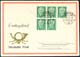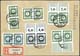 Seiffen. 10 Pf vom Unterrand, unten ungezähnt (bisher nicht bekannt) sowie Viererblock und senkrechtes Paar als ZuF auf überfrankierter R-Ortskarte (P8a), untere rechte Marke im Viererblock unten Scherentrennung, ansonstenüblich gezähnt, gestempelt DEUTSCHEINSIEDEL 8.9.45, Attest vom 27.5.15 Kunz BPP, eine sehr seltene Karte in tadelloser Erhaltung (12.100,-)